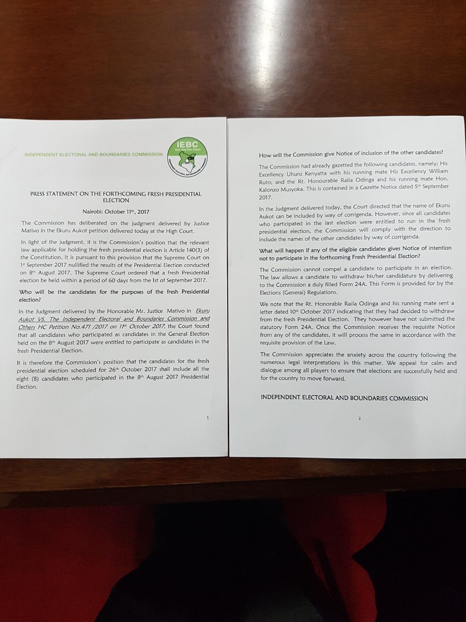 IEBC ruling after Aukot petition...All 8 candidates will be on the ballot.