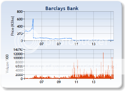 I need someone to fact check me. It may have actually been higher than that. Barclays, Centum & City Trust have also crossed the KES 600 mark at some point in the past