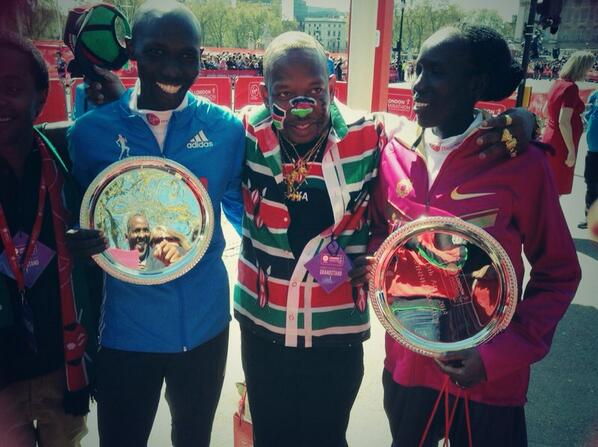 Edna Kiplagat has just landed in nairobi after winning the London marathon yet the first lady is still running!