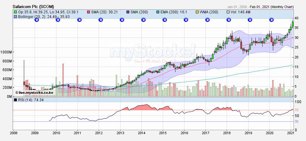 37 rejected twice on Jan 14th and Jan 26th and as such remains an ALL TIME HIGH and is expected to hold until the month of May when they announce results. This however can be taken out should Safaricom announce some positive news eg entry into Ethiopia.