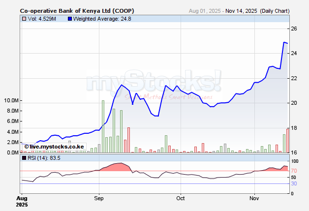 The share is also trading cum dividend (Dividend of Ksh 0.50) until 23rd of May. It will be interesting to see whether the share can touch the Ksh 18 price before books close next week Thursday.