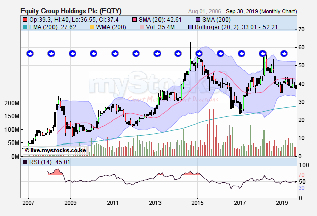 Ericsson wrote:VituVingiSana wrote:Ericsson wrote:young wrote:Ericsson wrote:Kcb share price on upward trend while equity bank on downward. Kcb has just completed acquisition of NBK while equity bank is in the process of acquiring Atlas mara banking assets To me based on their current prices, Equity is underpriced , it should be at par with KCB if not higher. But from dividend angle and for dividend hunters like me, please give me more KCB and take away your Equity. WHY ? 3.5 bob VS 2.0 bob dividend the difference is clear. KCB also paying dividend twice (interim and final) is also salulatory to us non resident foreigners and retirees like me (income). KCB is a balanced counter , investing in growth and also compensating shareholders accordingly . Equity is on aggressive growth only . Different strokes to different folks. Strictly old papa mzee@Young opinion . Soon even coop bank may catch up to Equity bank in terms of amount of money paid out as dividend Dividend payout for banking stocks FY2018 KCB---Ksh.10.75bn Equity bank---Ksh.7.54bn Stanchart----ksh.6.53bn Barclays---Ksh.5.97bn Coop---Ksh.5.9bn Of all the banks listed, I think Equity has the best potential for growth over the next 5-10 years with the recent acquisitions in DRC and of Atlas Mara banks. For those looking for a higher dividend yield in the near future then KCB or SCBK may be a better option. Different strokes for different folks. We wait and see Points of concern in both entities: Kcb-G.o.K and nssf combined ownership of 23%.This brings fears of meddling. Equity- How will it survive post James Mwangi? Numbers favour Kcb as Equity has appeared lethargic in recent years. Towards the goal of financial freedom