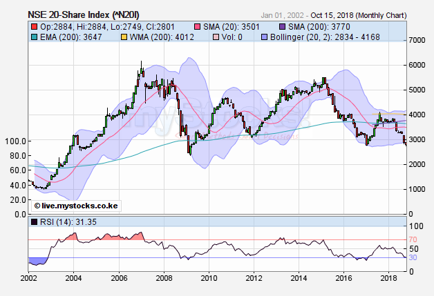 Finally the Jan 2017 low has been smashed and we are at levels never seen in this decade. NSE 20 currently at 2783.