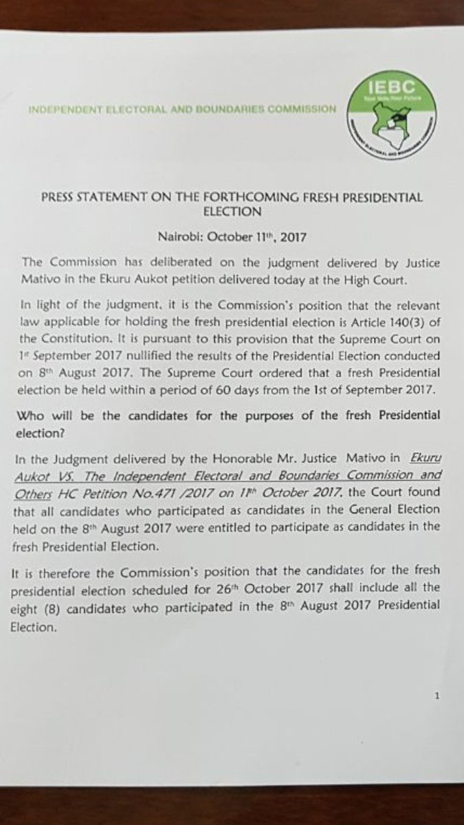 Baba and team are just out to cause confusion...mayhem...anarchy.....and until IEBC receives such a request (Which, according to the law, has already been overtaken by events), waving a statement and purporting it to be a withdrawal is just for the Tvs......and whether baba and his supporters participate or not, his name will be on the ballot......hii ingine yote ni mnyambo ya punda